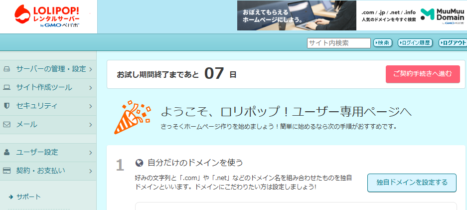 他のサービスもそうだけど、ドメインと一緒にレンタルサーバーも契約させようとしてくる。ただ私は自宅で24時間付けてるPCがあるし、とりあえずそれをサーバーとして使いたいな~って考えたから、この時はドメイン取得のみにした。