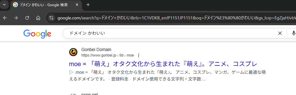 まずどんなドメインにしたいか考えることに。最初は無難に「.com」「.jp」あたりがいいかなって思ったけど、せっかくならかわいいドメインにしたいって思った。だからGoogle先生に「ドメイン かわいい」で調べてみた。