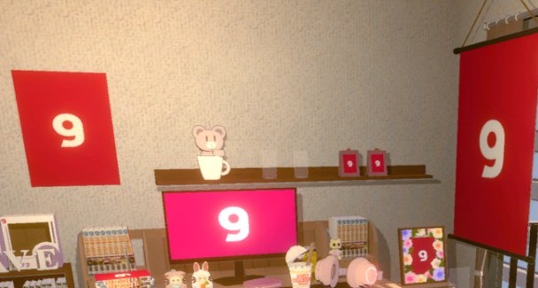部屋は9個まで作成して保存できる。自分の普段の作業部屋を作ったら、今度は大人数招待できるカフェや別荘を建てる……なんて楽しみ方も。