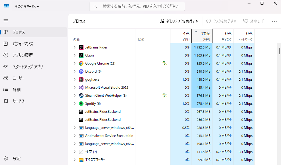 マルチプレイの宿命として、PCへの高負荷問題は付きもの。『gogh』はどうなんだろうって思って、試しに部屋容量66MB、部屋人数10人程度の比較的複雑な部屋で計測してみた。