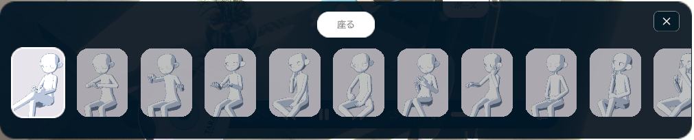 立つ、座る、寝るでそれぞれモーションが用意され、そのモーション自体に不満はないけど、どれもシルエットのみで何をしているのかが分かりにくい。