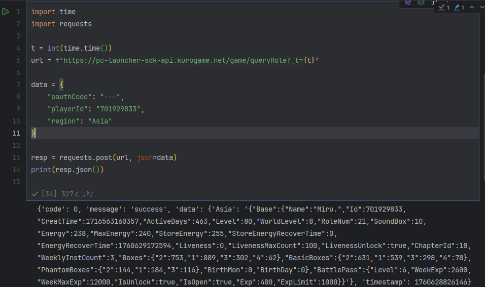 URLは https://pc-launcher-sdk-api.kurogame.net/game/queryRole ということが分かった。