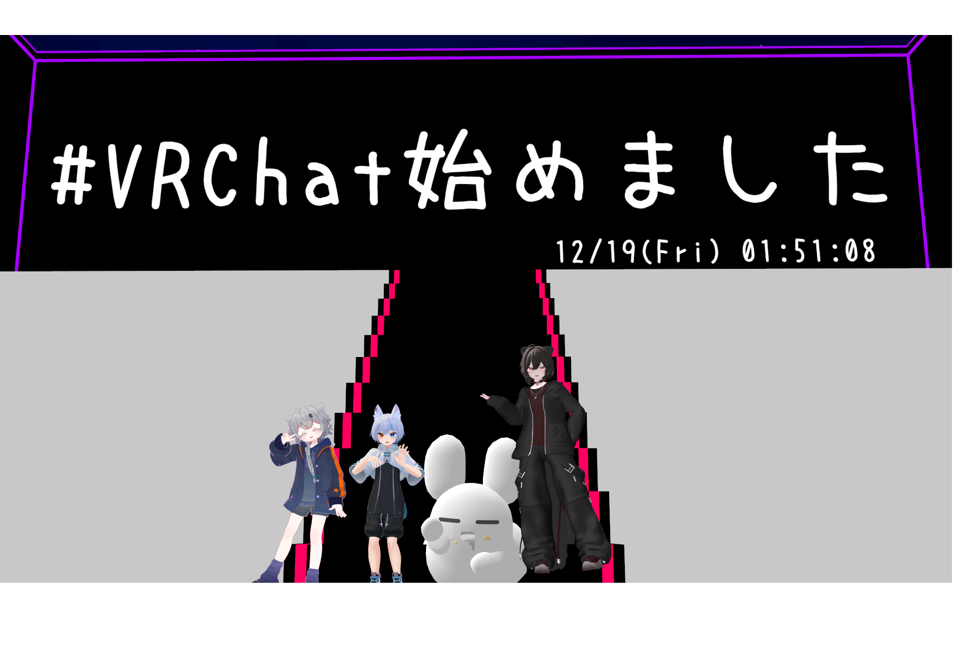 上の写真はそこで撮った記念写真!うさぎのマスコットみたいなアバター1が私。その隣が友人で、両端にいる二人が途中から合流してきた友だちのフレンドさん!
