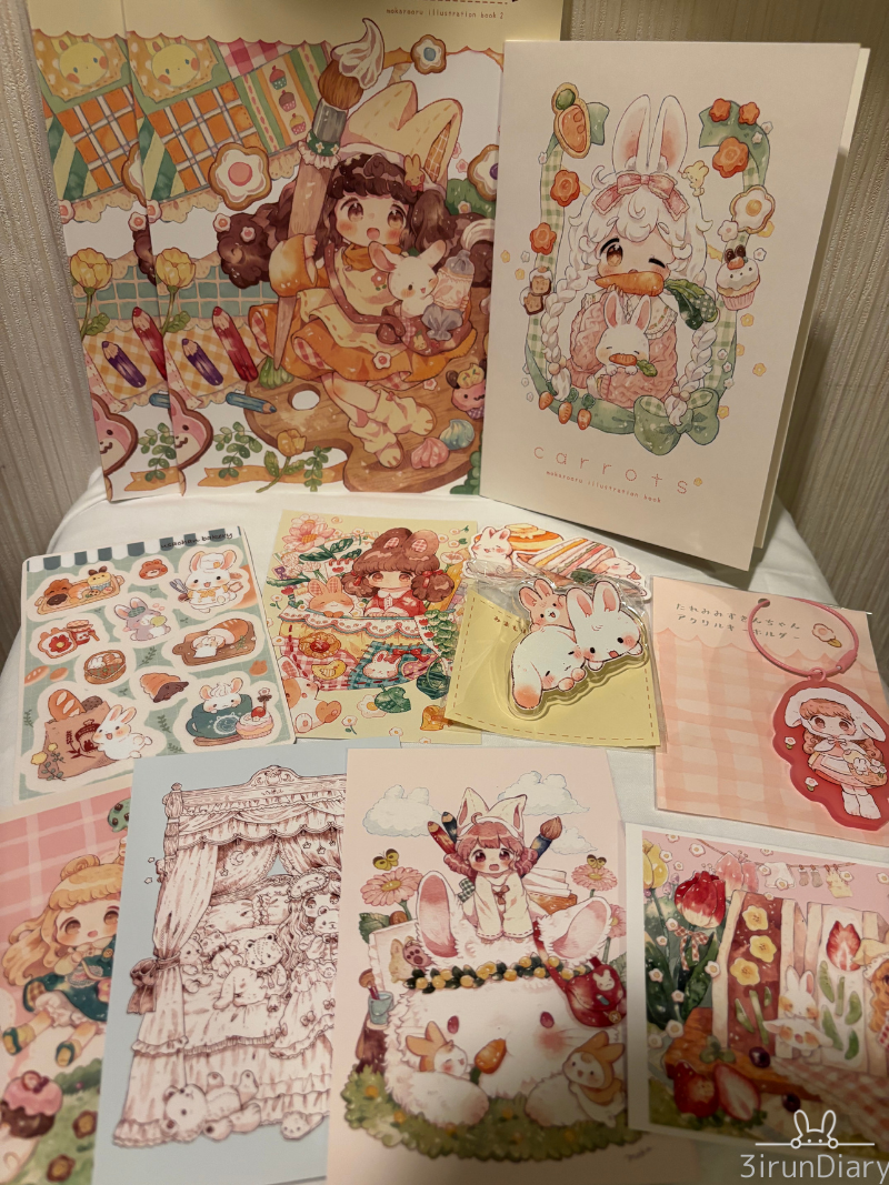 白うさぎさんテーマのイラスト本とかアクキーが並んでた。実際に見る先生の絵は、思わず笑顔になっちゃうかわいさだった〜