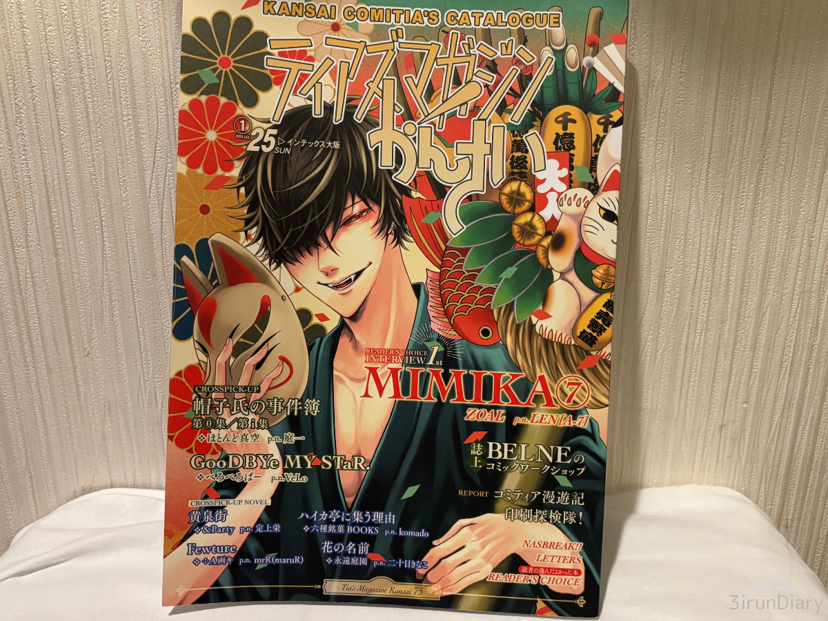 「関西コミティア75」はインテックス大阪の2号館で行われたよ。会場の入場には「ティアズマガジンかんさい」っていうカタログ冊子が必要で、1000円で販売されてた。当日会場で買えるし、通販で事前に買っておくこともできる。私は通販使った!